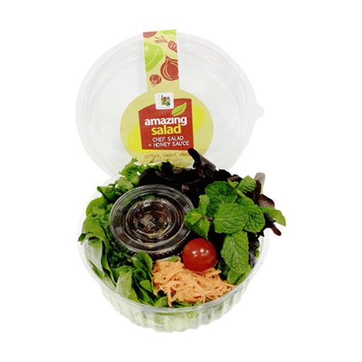 Chef Salad dan Honey Sauce adalah salad yang terdiri dari lettuce yang dapat melawan sel kanker, wortel yang merupakan sumber dari vitamin A, bawang bombay yang dapat memberikan selera makan yang tinggi, serta daun mint yang berfungsi mengurangi panas tubuh dan membuat kulit jadi lebih sehat. Dressing untuk Chef Salad adalah Honey Sauce yang berbasis minyak zaitun.